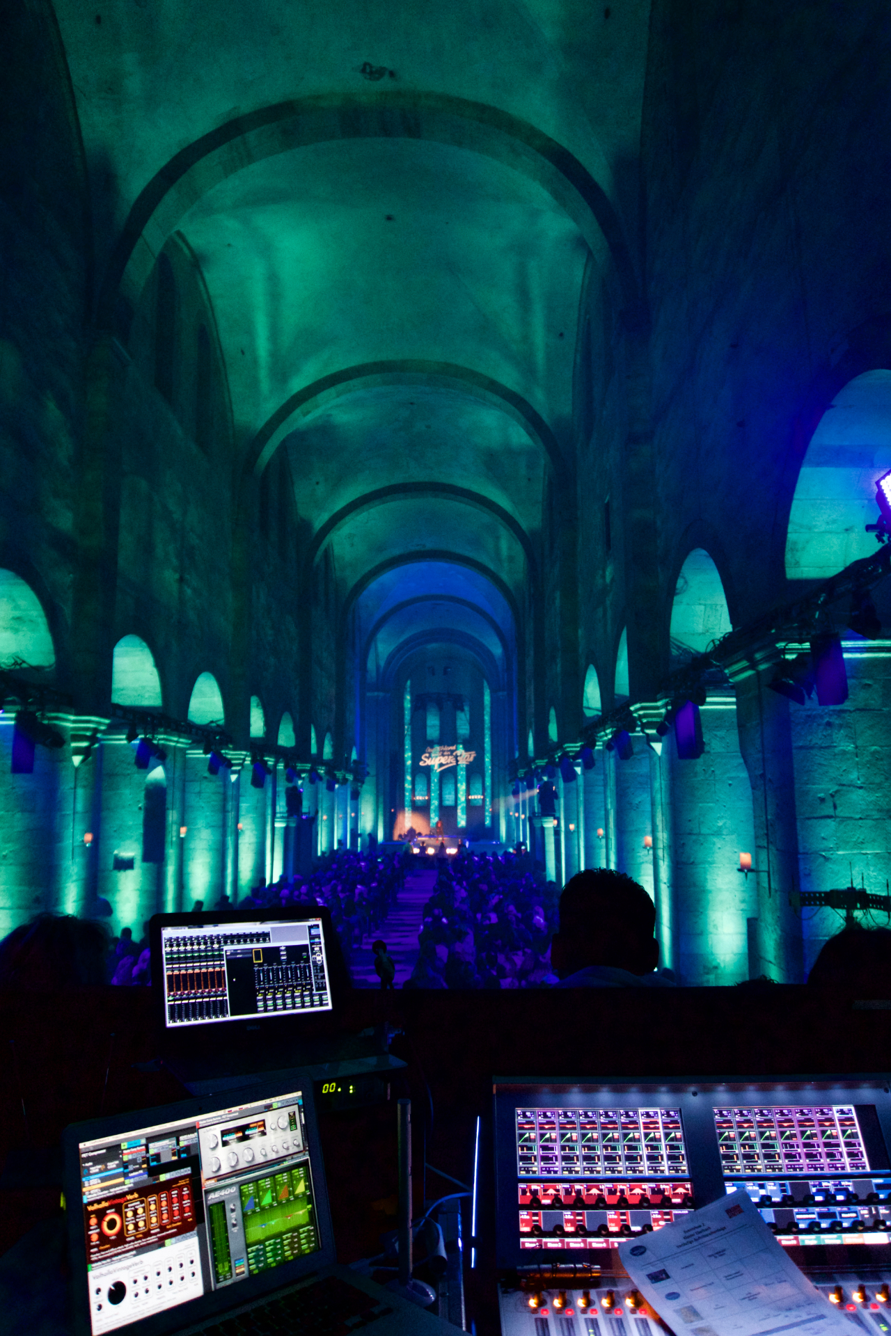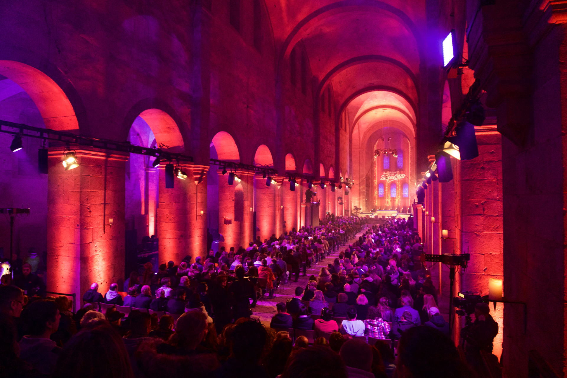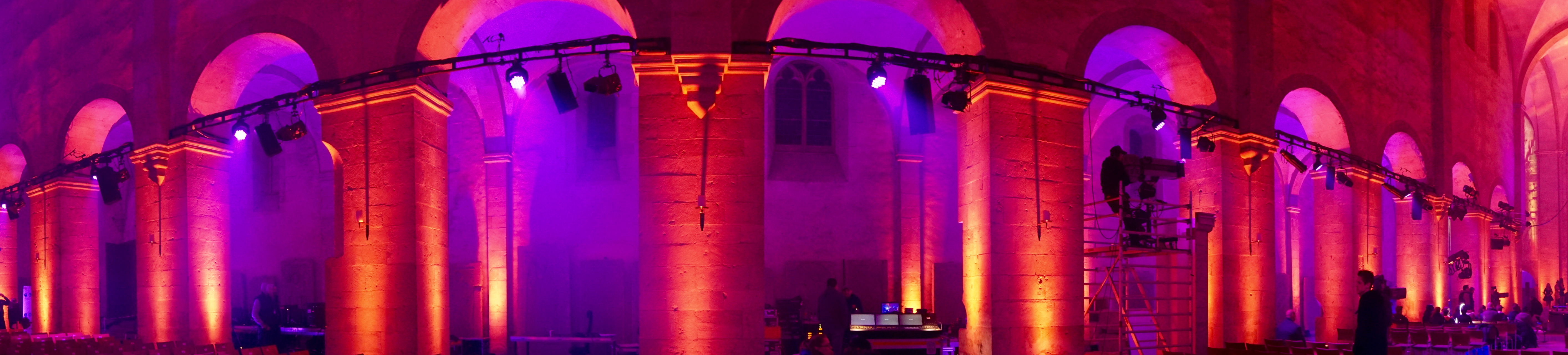 Zugegeben, es gibt einfachere akustische Umgebungen… Aber wir stehen auf die Herausforderung. So kam uns das Kloster Eberbach als zweite Station der Tour ganz recht! Hier möchten wir uns bei db Technologies bedanken, die uns mit ihrer Ingenia Serie unterstützt haben. Die kleinen „Säulen“ haben sich, wie nicht nur wir fanden, auf schlankem Fuß in die großen Gemäuer der Basilika eingepasst und auch noch spitzen Sound geliefert.